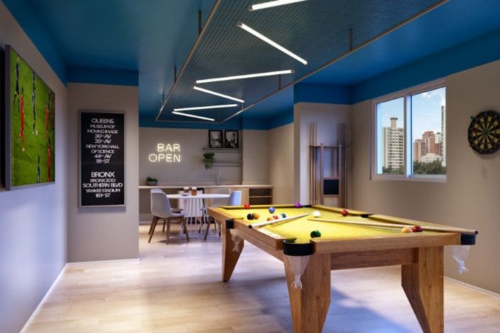 Piscina, Área Fitness, Coworking, Espaço Beer, Salão de Festas, Salão de Jogos, Sport Bar, Churrasqueira, Quadra Recreativa, Pet Place, Playground, Praça de Esportes, Espaço Delivery, Lavanderia, Bicicletário.